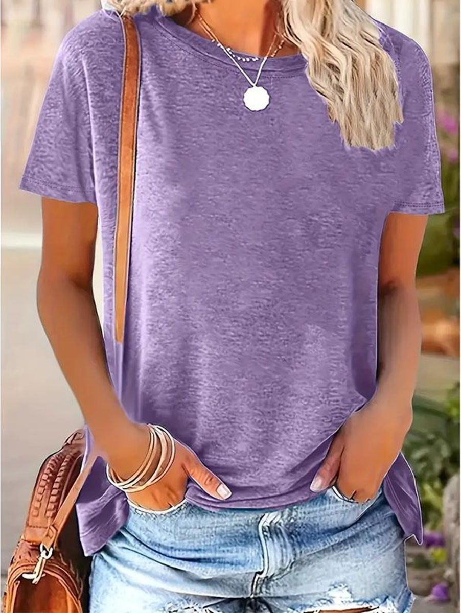 A buttery blend of polyester, rayon, and spandex gives these tees their signature softness and natural stretch.