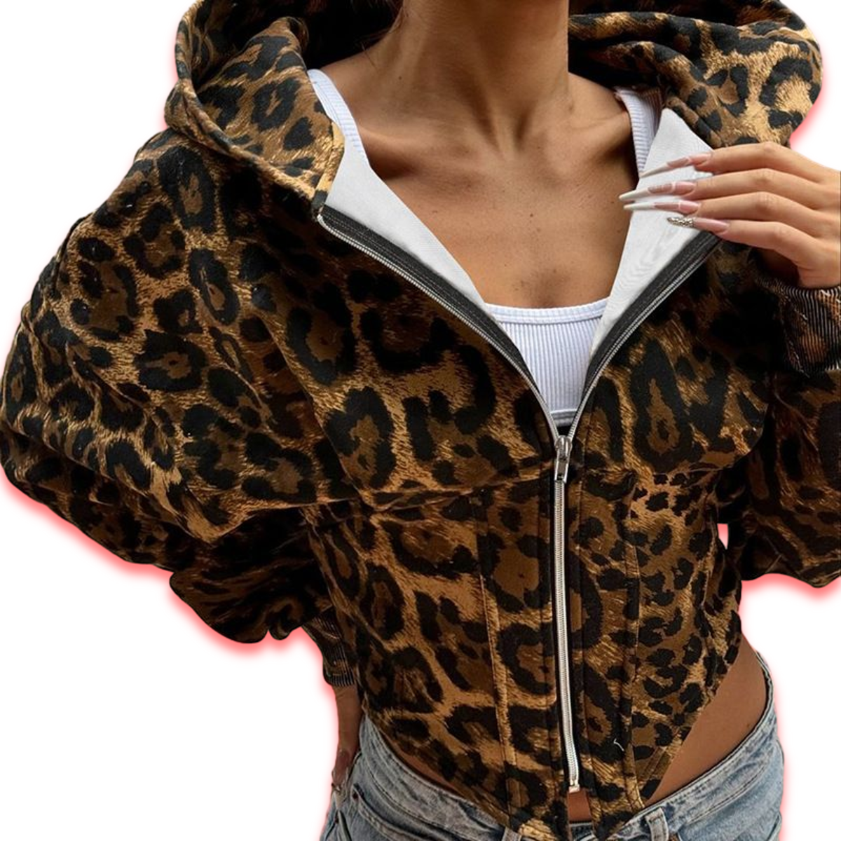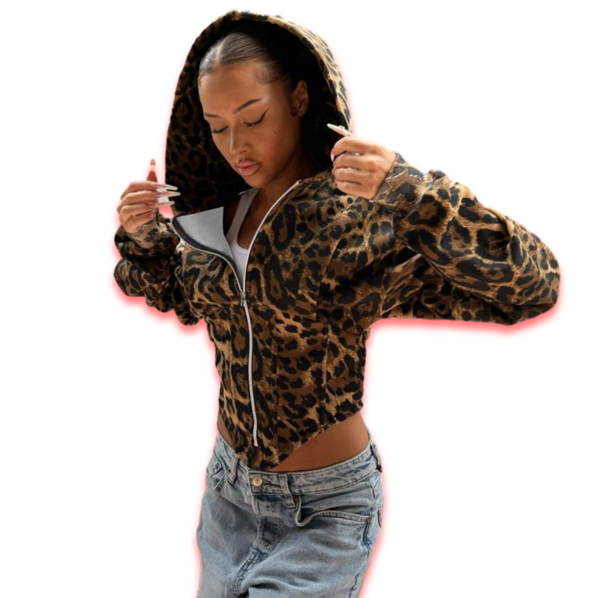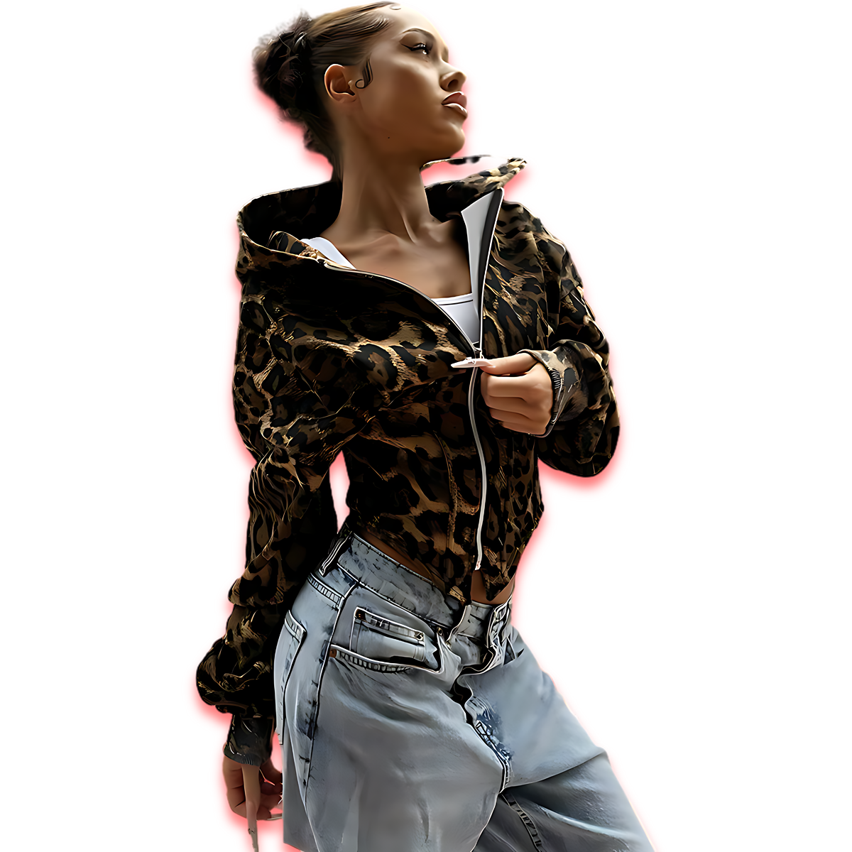 Sleek zipper detailing and a bold leopard print strike the perfect balance between daring and refined.