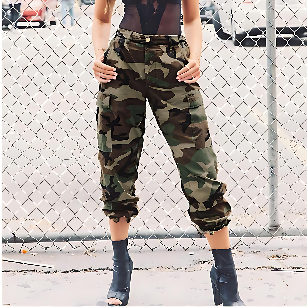 Inspired by street icons and off-duty models. These camo cargos deliver confidence with every step. Dress them down with sneakers or amp it up with heels and a corset top. The style energy never fades.