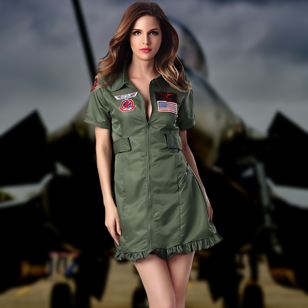 The listing includes the flight dress only — accessories shown are for styling inspiration.