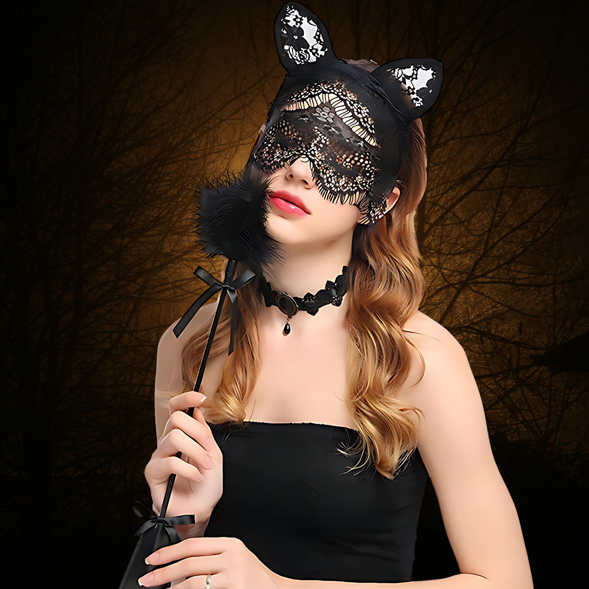 Pair it with corsets, velvet dresses, or chokers to complete your gothic cat, witch, or masquerade-inspired costume.