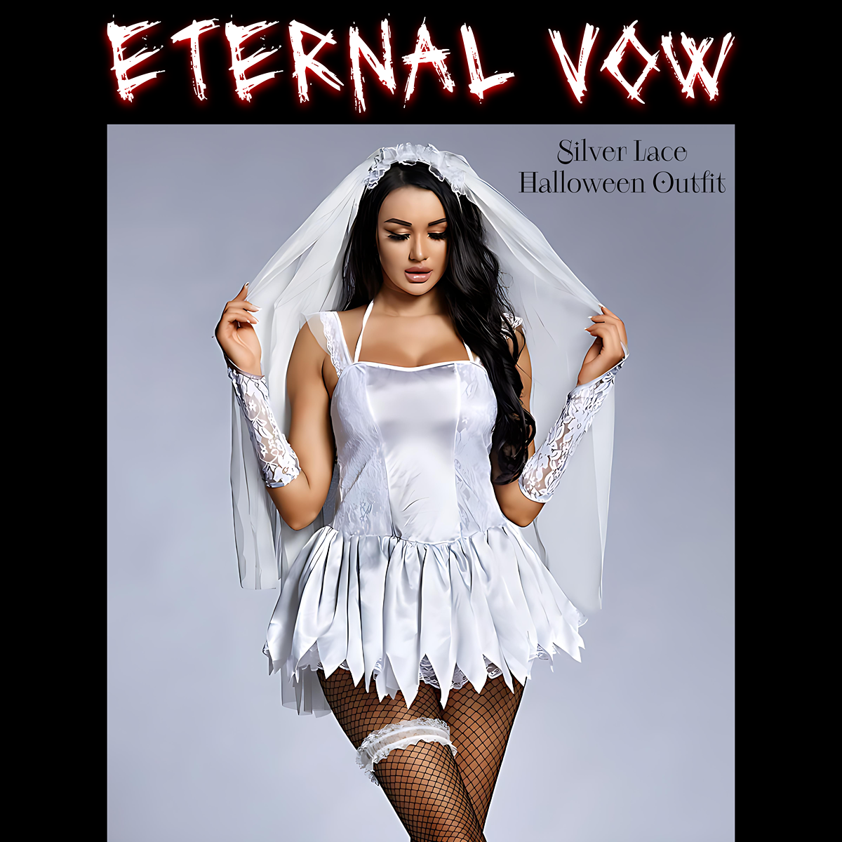 Includes every essential detail: a flowing veil, lace gloves, dress, and leg garter. Slip it on and step straight into your ghostly fantasy — no extra accessories needed.