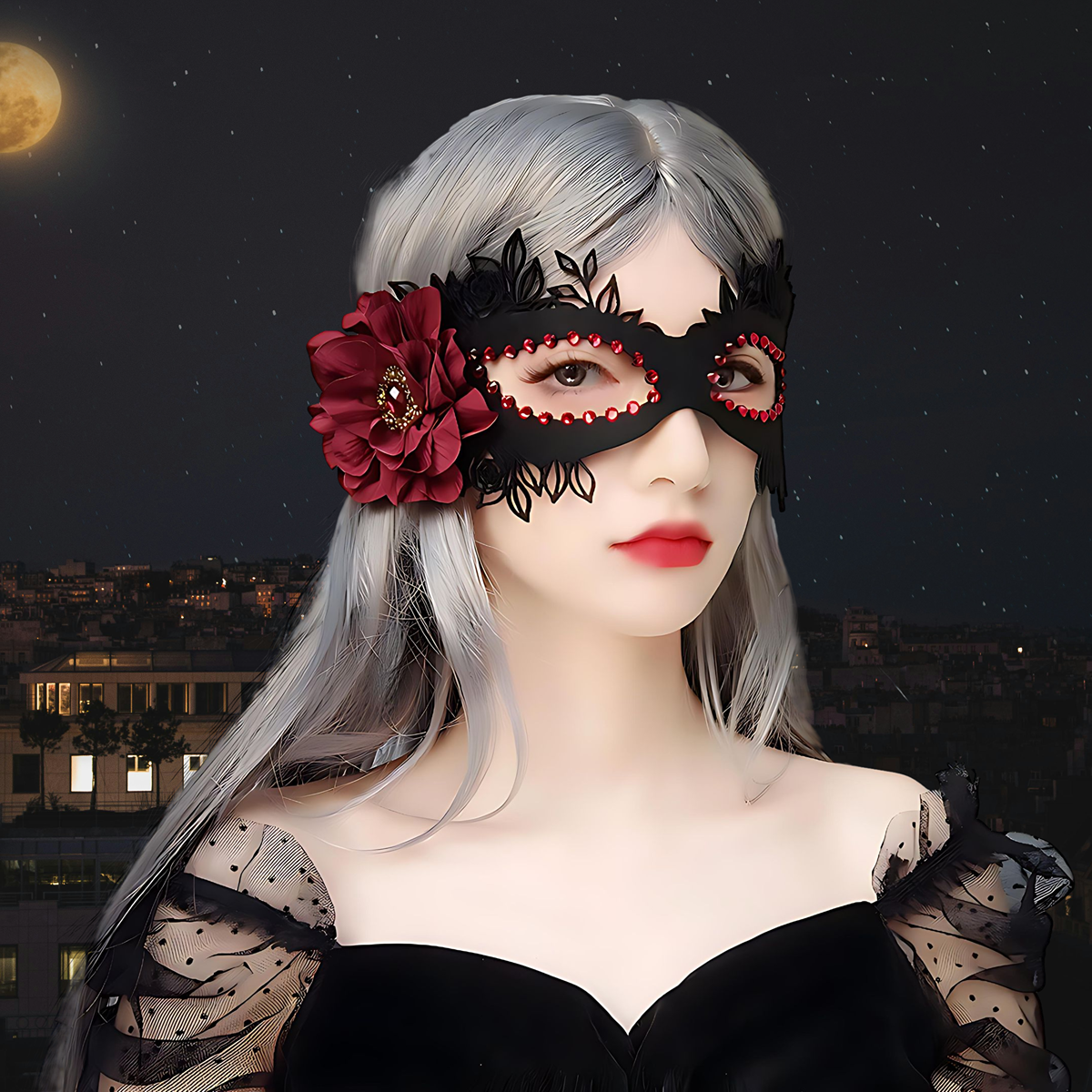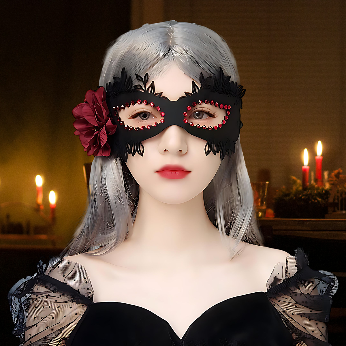 Slip into the world of moonlit glamour with a mask that speaks of secrets and seduction. The diamond-cut eye openings and lace edge design frame your gaze with captivating detail.
