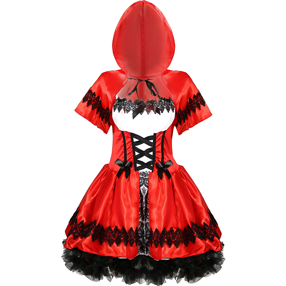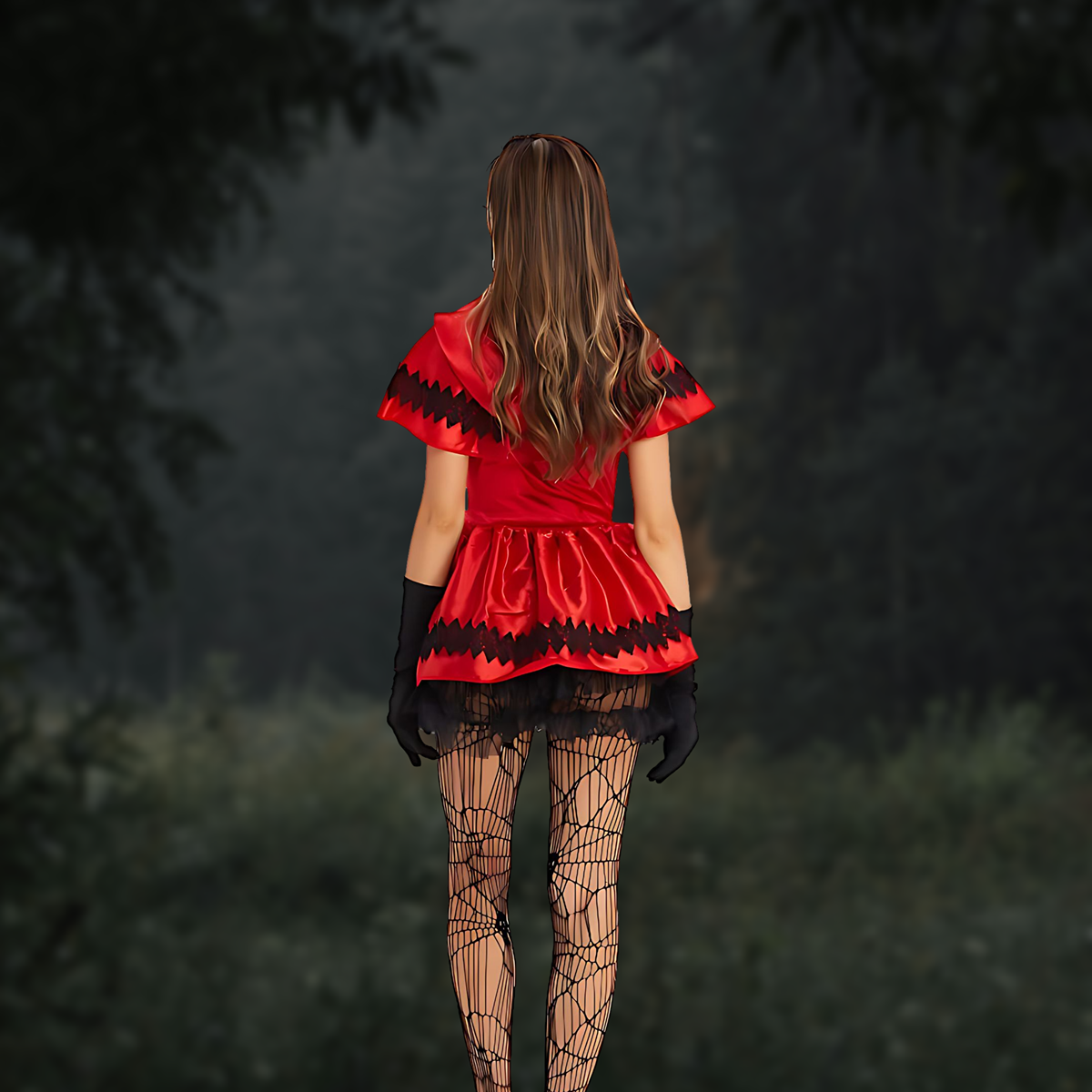 Step into a reimagined fairytale where Little Red becomes the heroine of the night. Satin red meets black lace trim for the perfect balance of sweetness and seduction. From the lace corset front to the tiered skirt layers, every element is camera-ready and built for glow-up Halloween moments.