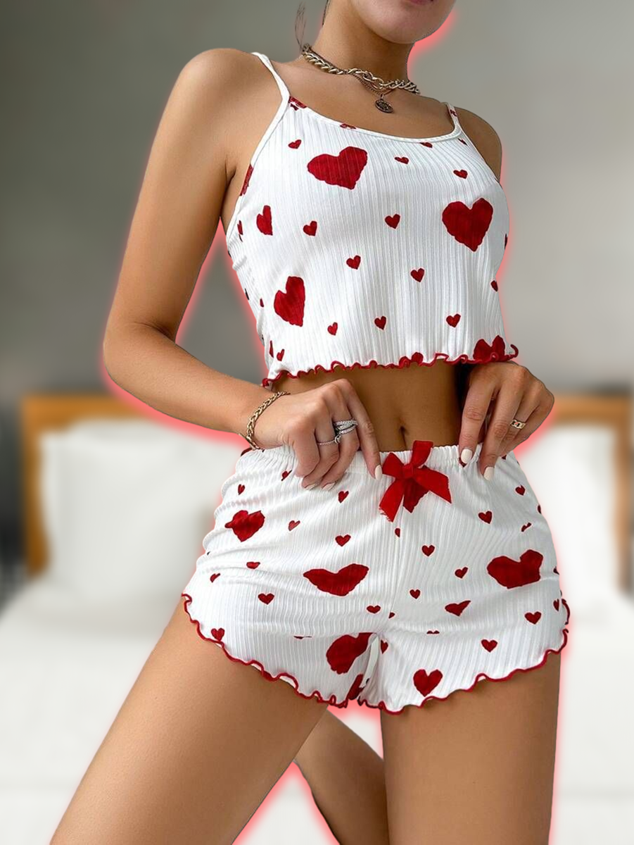 The ribbed hollow stripe texture feels smooth and cozy, while the heart prints keep it fun and bold.
