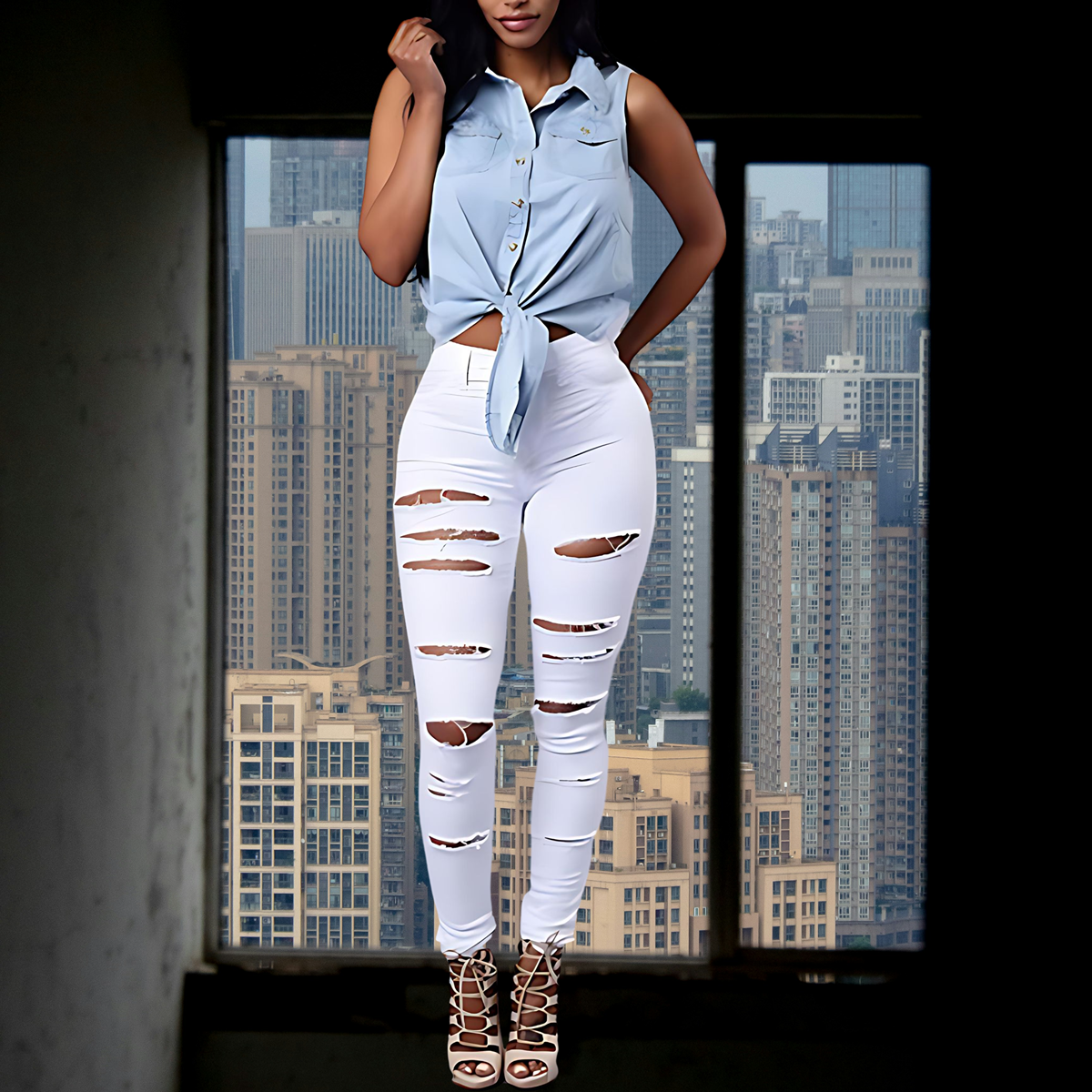 Strategically distressed for a fierce, flattering look — revealing just enough to tease, never too much to take away from your glow. Dress them down with sneakers or elevate them with heels — either way, the Snatchback owns every room.