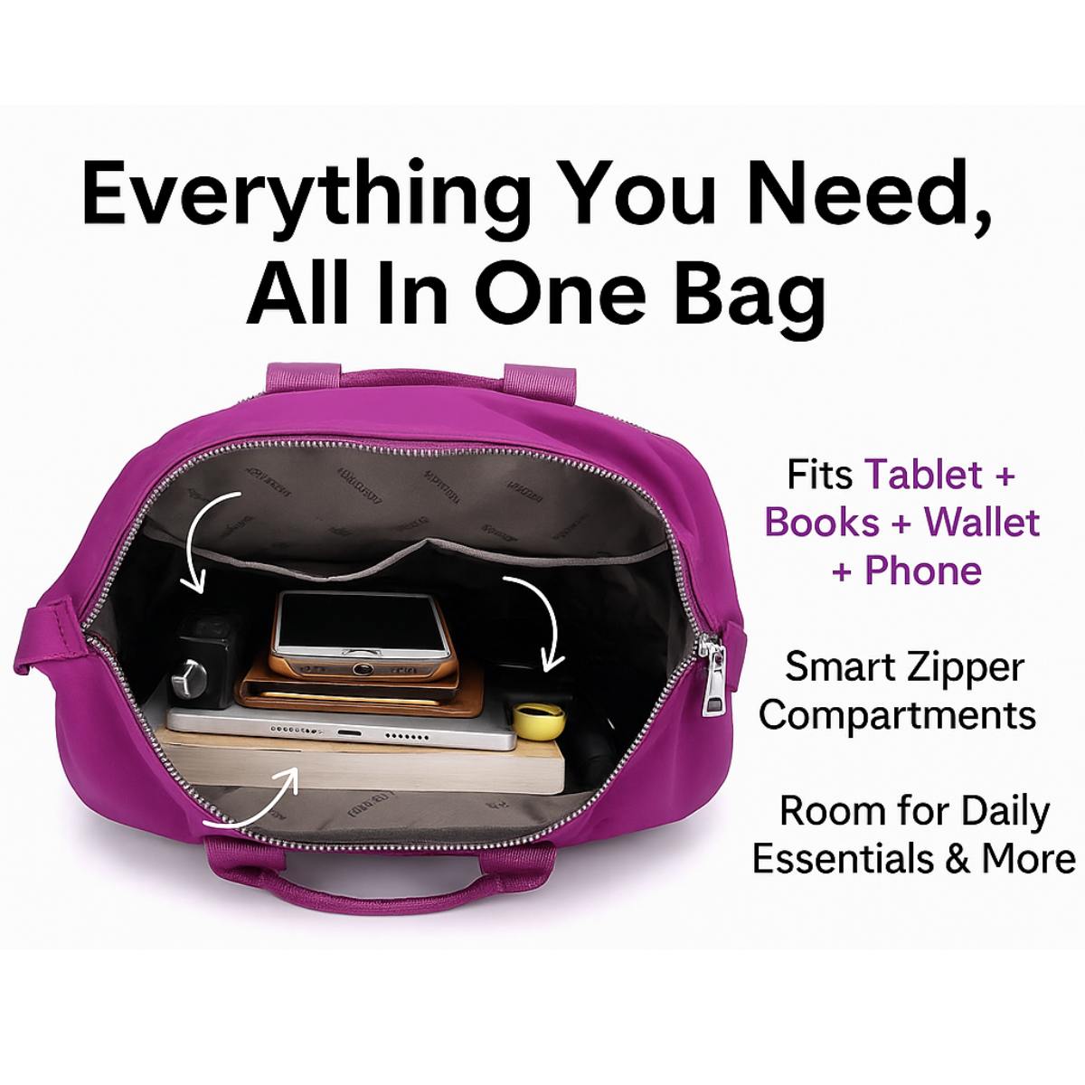 “This bag is so lightweight and still fits everything I need. The compartments keep me organized and I love the clean style.” — Rachel, Boston