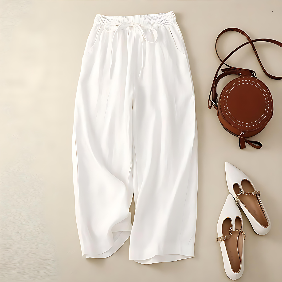 Women’s Cotton & Linen Cropped Wide-Leg Pants