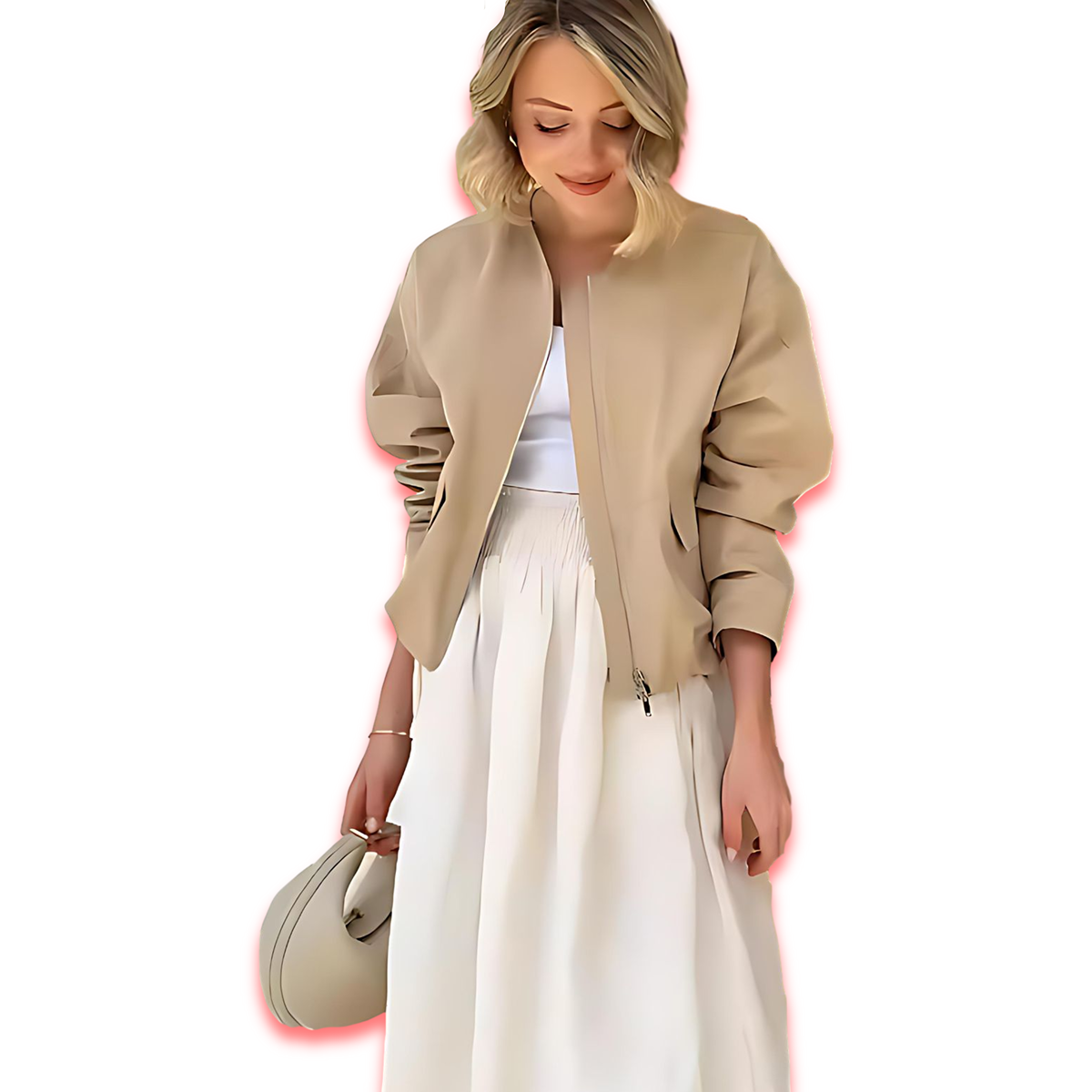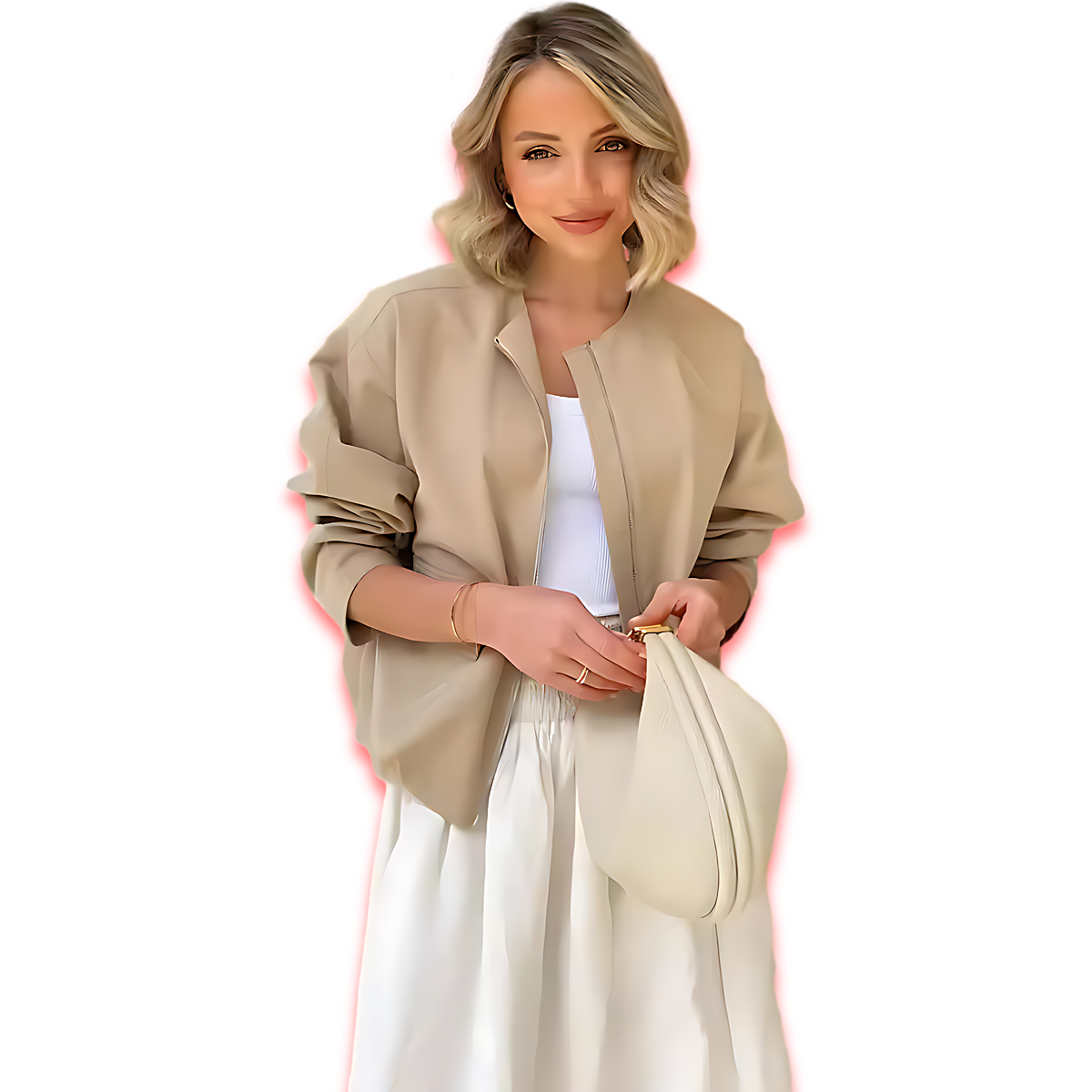 The Citylight Bomber embodies soft structure and subtle strength — clean lines that move with you from morning commute to evening unwind. Every detail was chosen to bring out quiet sophistication and comfort.