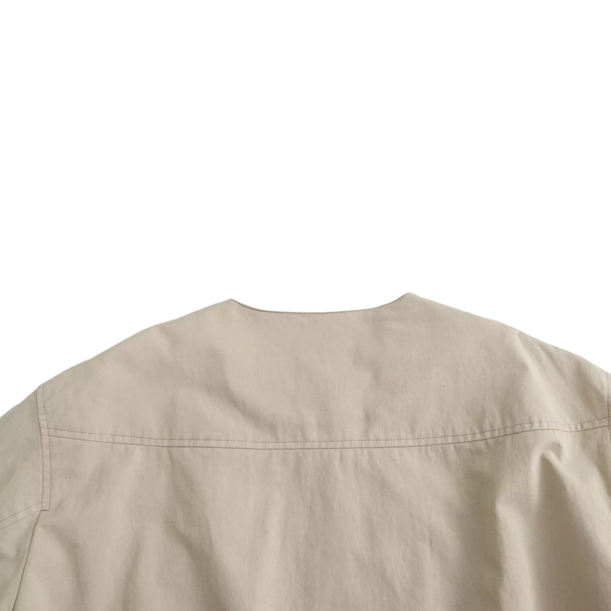 A collarless, sculpted design that frames the shoulders beautifully for a structured yet feminine fit.